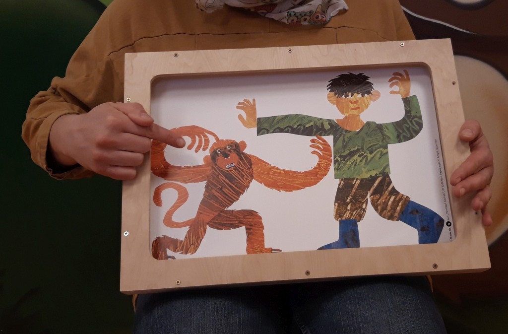 Hier wird Geschichten Leben eingehaucht. Mithilfe der Geschichten-Säckchen und Kamishibai wird eine Geschichte dreidimensional für die Kinder erlebbar. Das hat gleich mehrere positive Effekte: Interesse wird geweckt, Verständnis wird unterstützt, die Kreativität wird angeregt, Wissen wird vermittelt, der Wortschatz wird erweitert und vor allen Dingen: Freude am Erzählen und Zuhören wird geweckt.